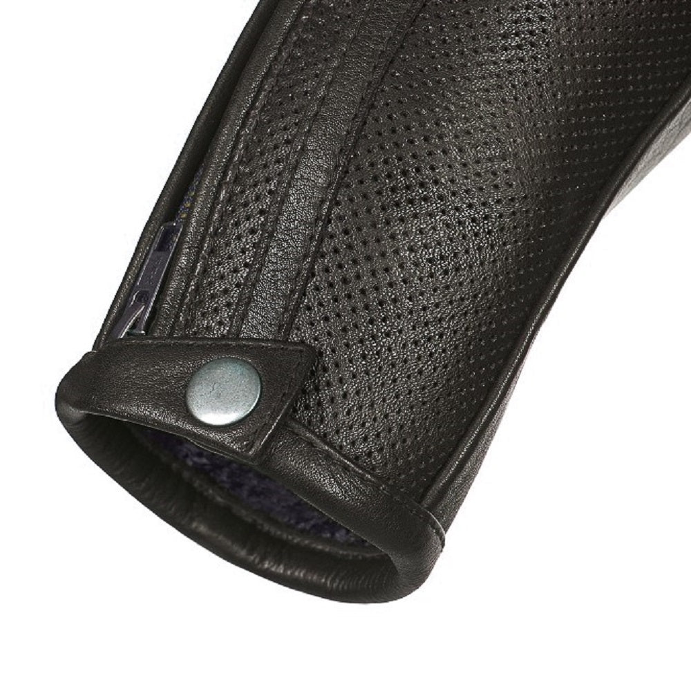 - side accordion stretch leather panels sewn onto lycra (spandex) for more freedom of movement
