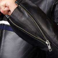 Metropolis Biker Leather Jacket with a blue stripe