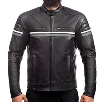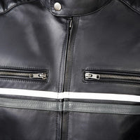 Metropolis Biker Leather Jacket with gray stripes