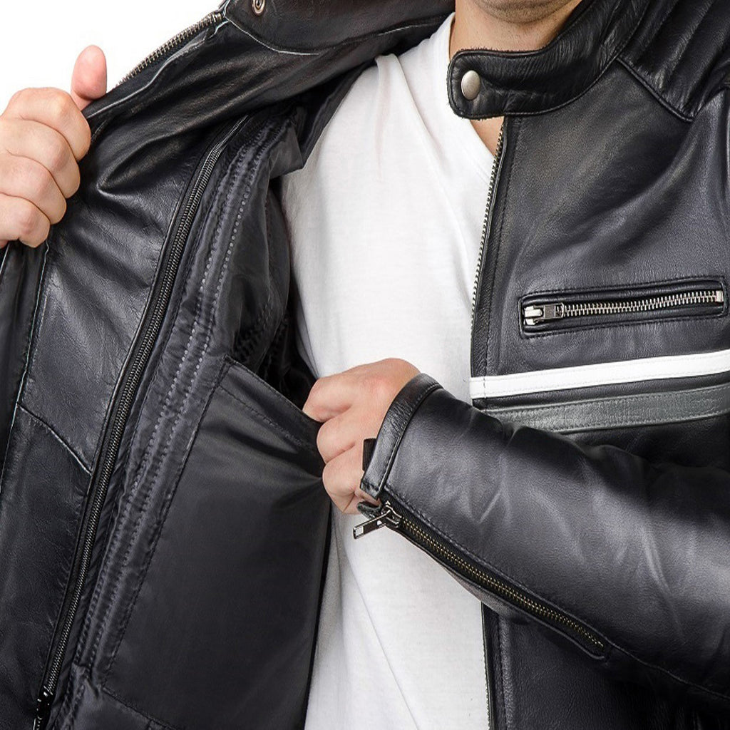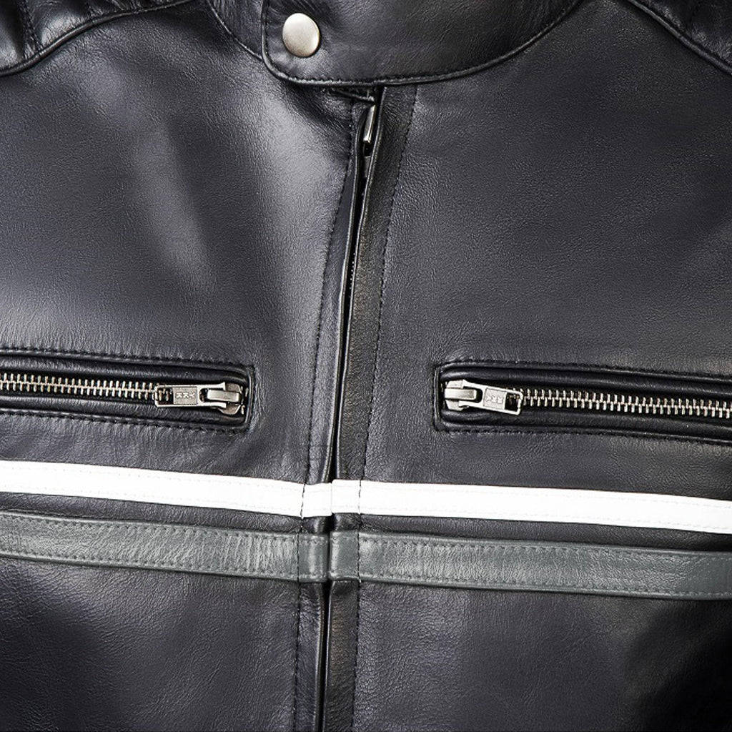 Metropolis Biker Leather Jacket with gray stripes – Corelli MG
