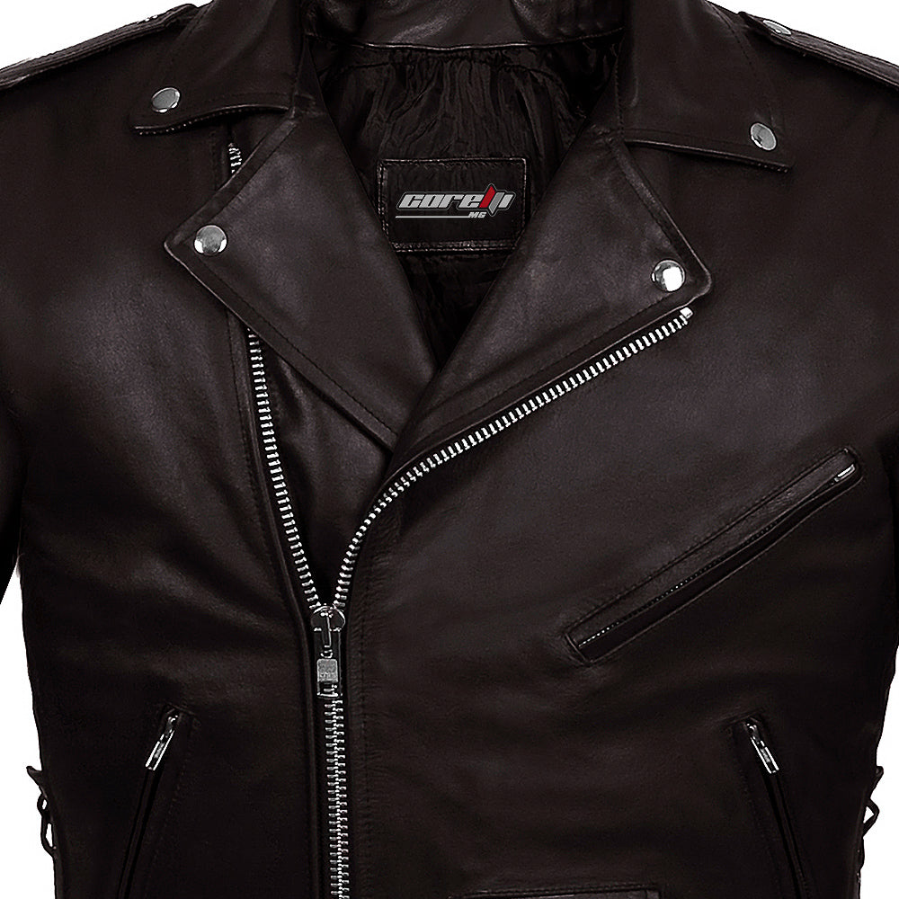 Get the Terminator look with this epic,Ā CE-protected biker leather jacket inspired by Arnold Schwarzenegger in "Terminator II."Ā You'll feel like a badass wearing it year-round, on or off the saddle!Ā
