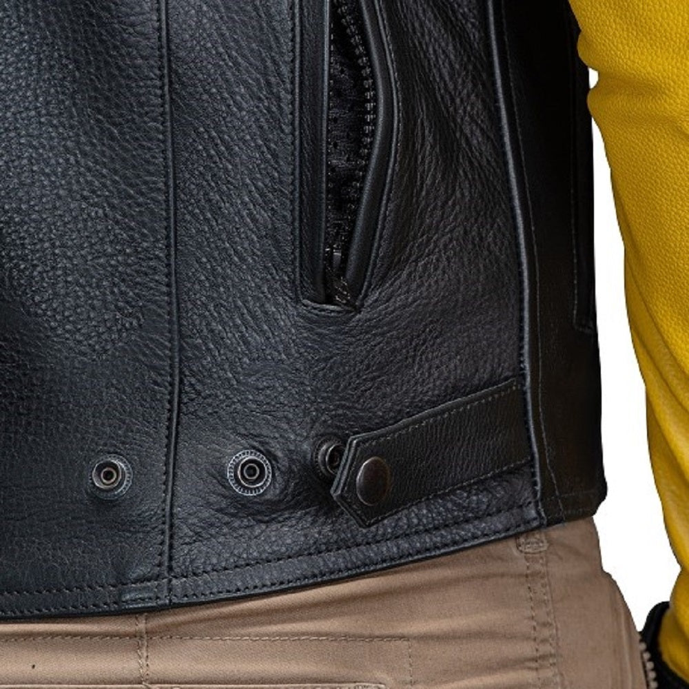 This preppy CE-protected biker leather jacket has an air-flow ventilation system, which provides unmatched comfort when riding in warm or hot weather.
