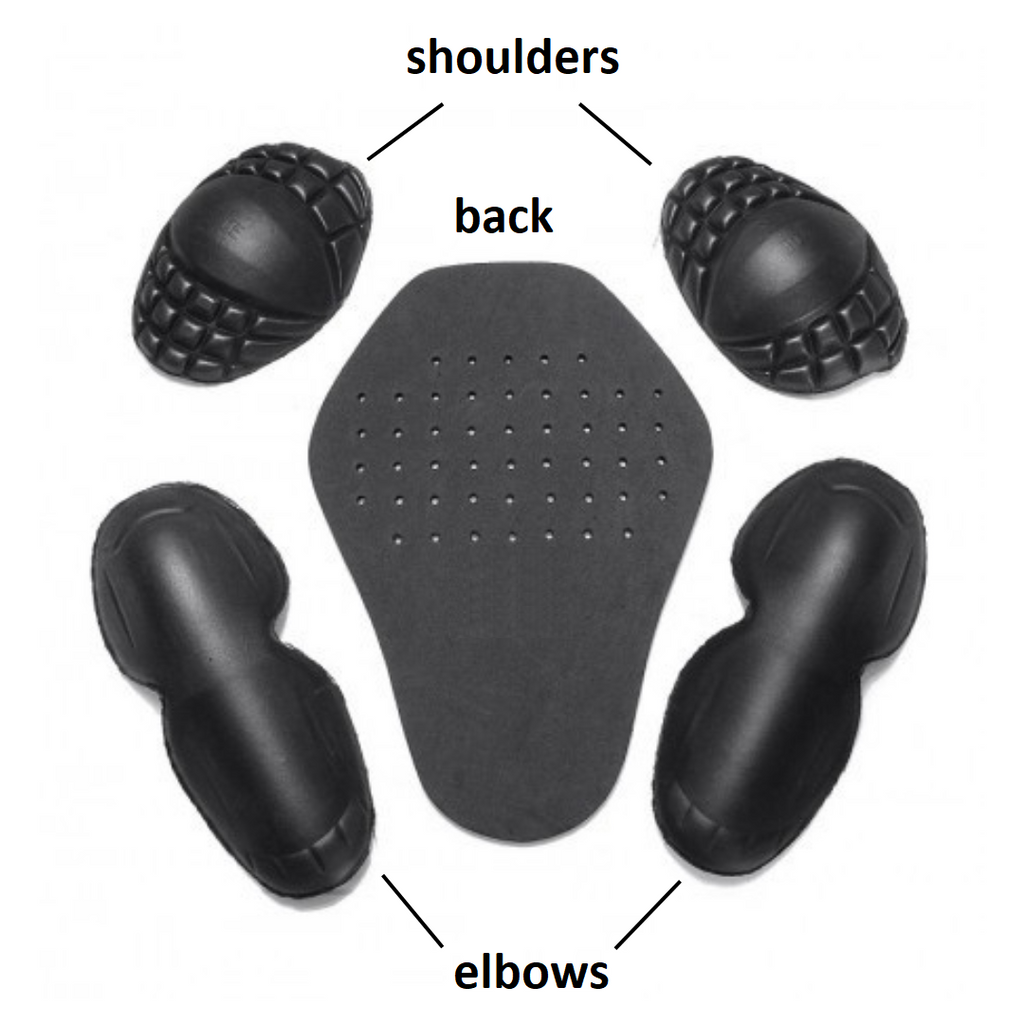 removable CE-certified protectors on the shoulders, elbows, and back, level 1 protection, made of moulded PU impact material, EN17092 standard