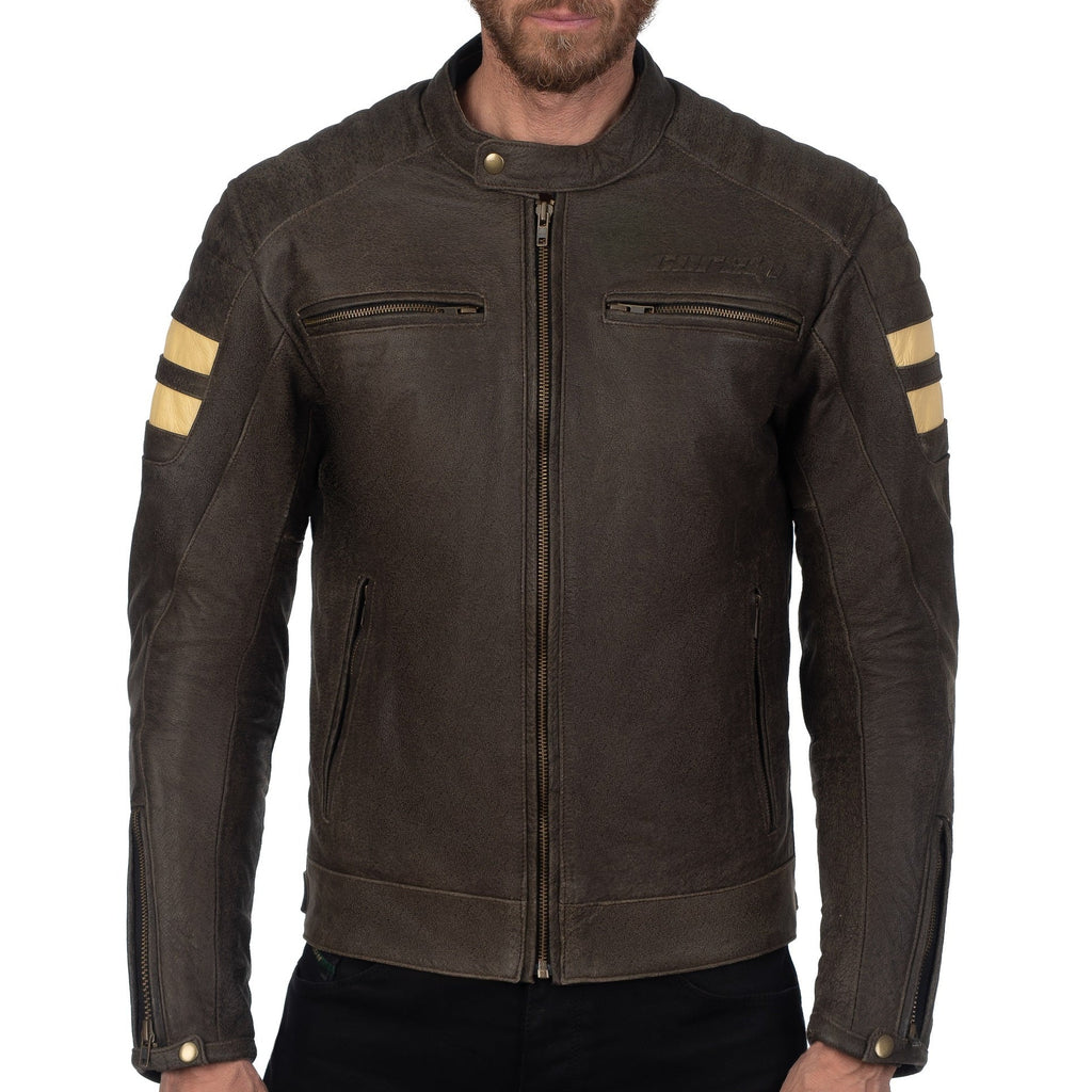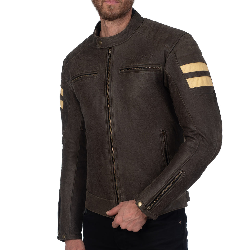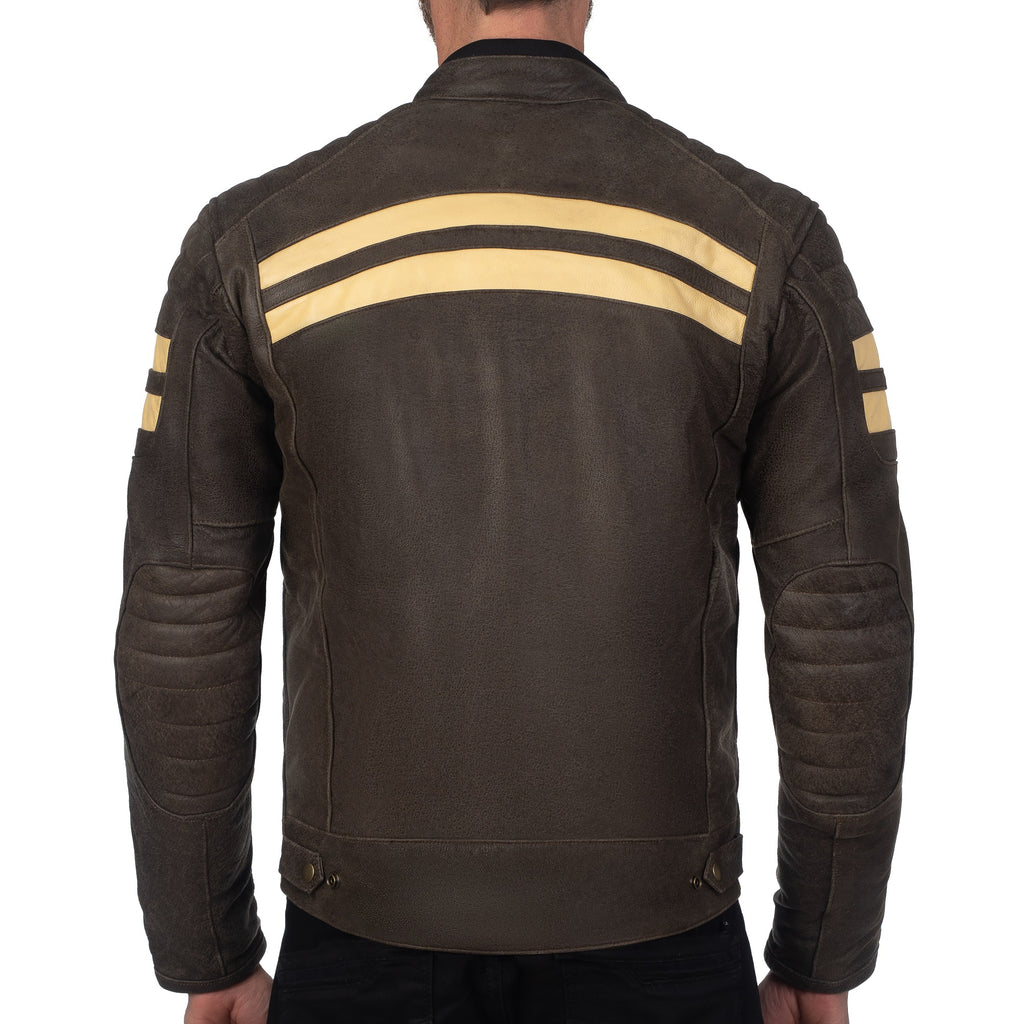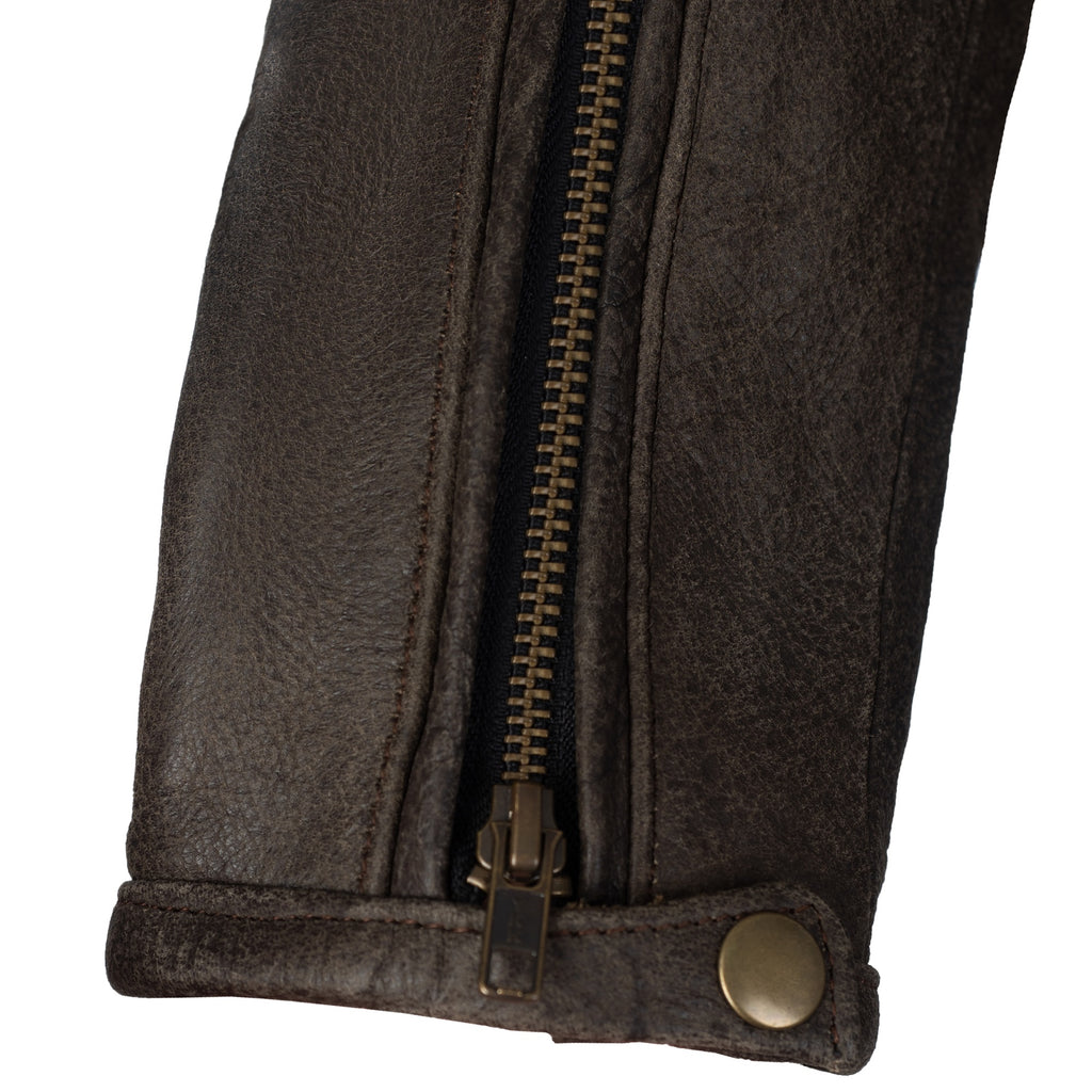 Ride in style with our antique-brown retro-style biker leather jacket, which comes with a Lifetime warranty. It features CE protectors, reinforced stitching, and a detachable lining. Without its removable protectors, it is a head-turner on the bike or the street.
