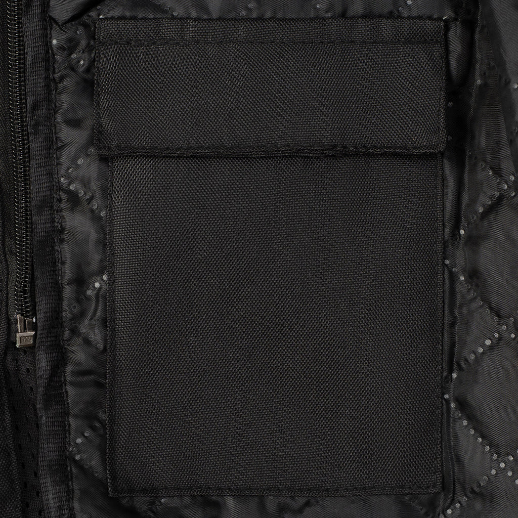 removable CE-certified protectors on the shoulders, elbows, and back, level 1 protection, made of moulded PU impact material, EN17092 standard