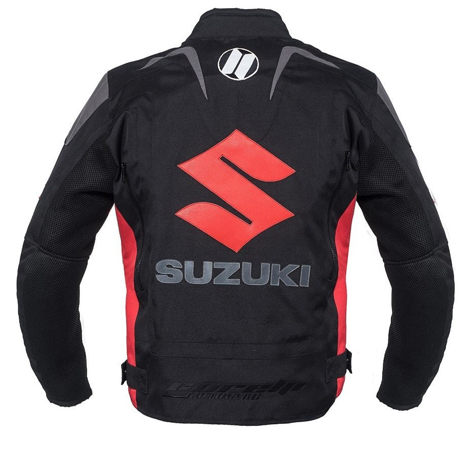 If you are looking to self-express and impress, look no further! This is the textile version of the Suzuki Motorcycle Leather Jacket. It offers lighter weight, racing styling, and multi-season protection and comfort. For riders looking for a stylish look and custom fit, the Suzuki Textile Jacket is genuinely one of a kind.