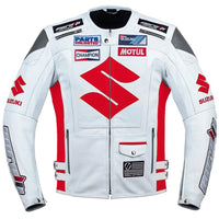 This impressive Suzuki biker jacket radiates racing spirit and confidence and is a true "head-turner." It is comfortable and stylish and an excellent choice for year-round racing.